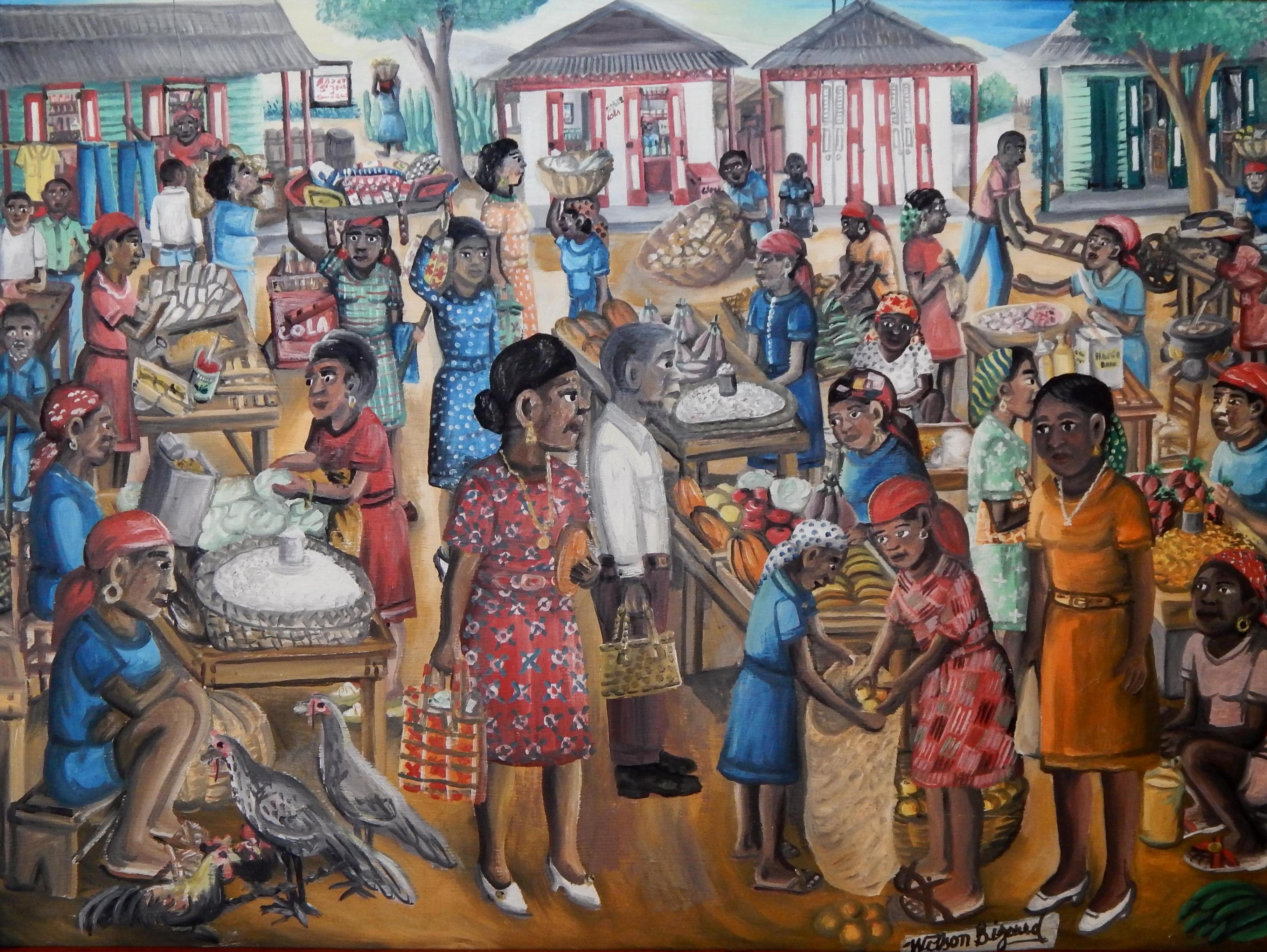 Haitian Artist Wilson Bigaud Painting Village Scene Market Day At 1stdibs